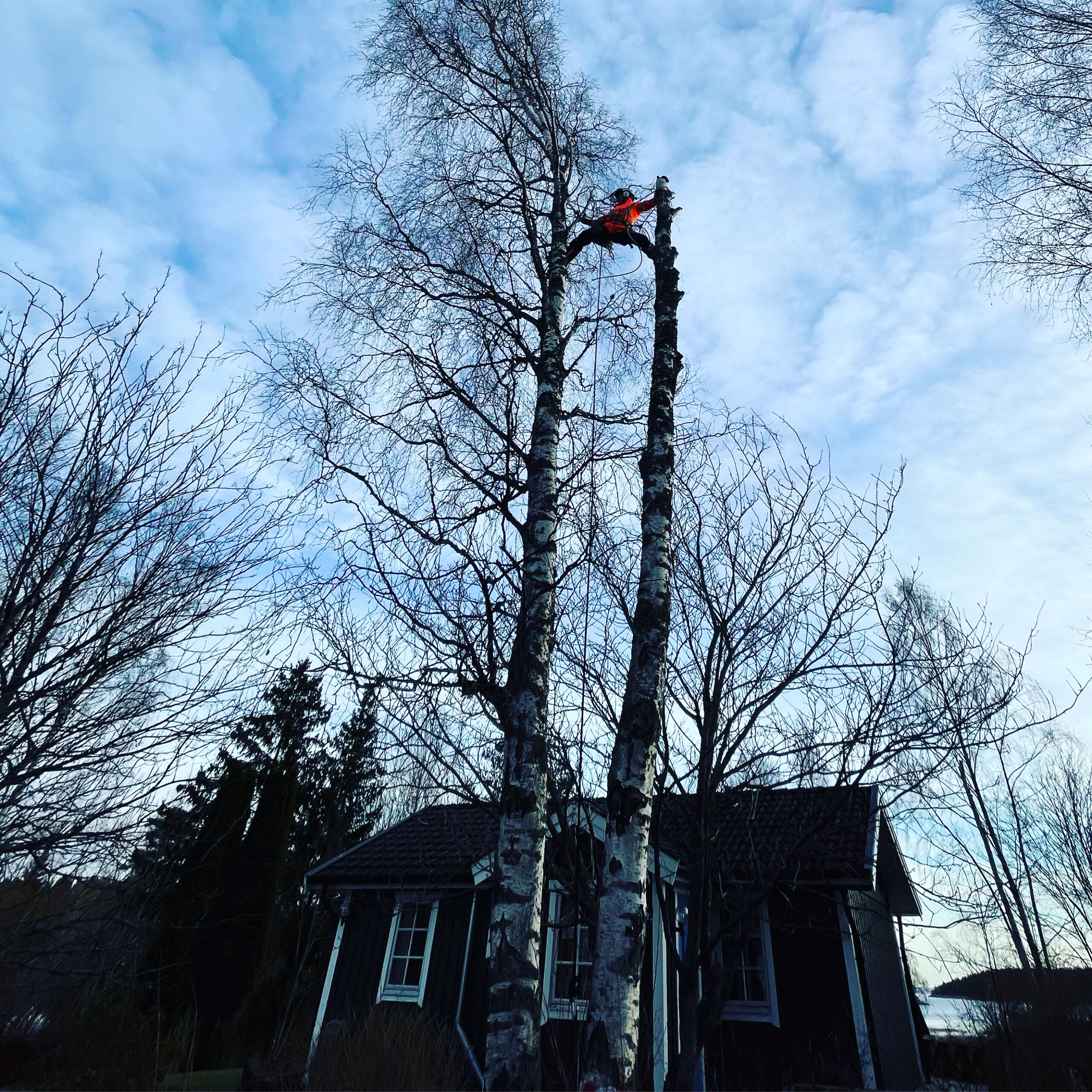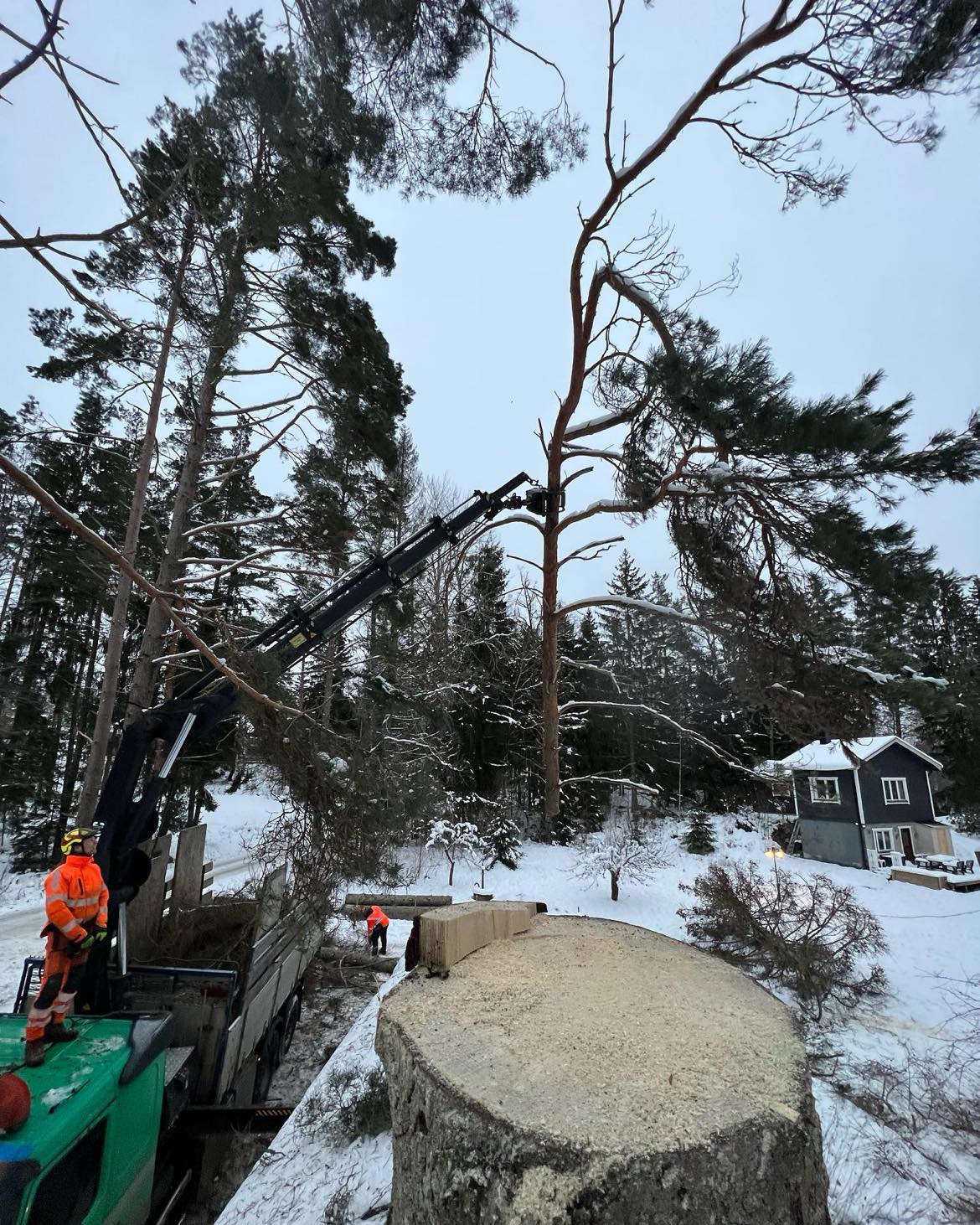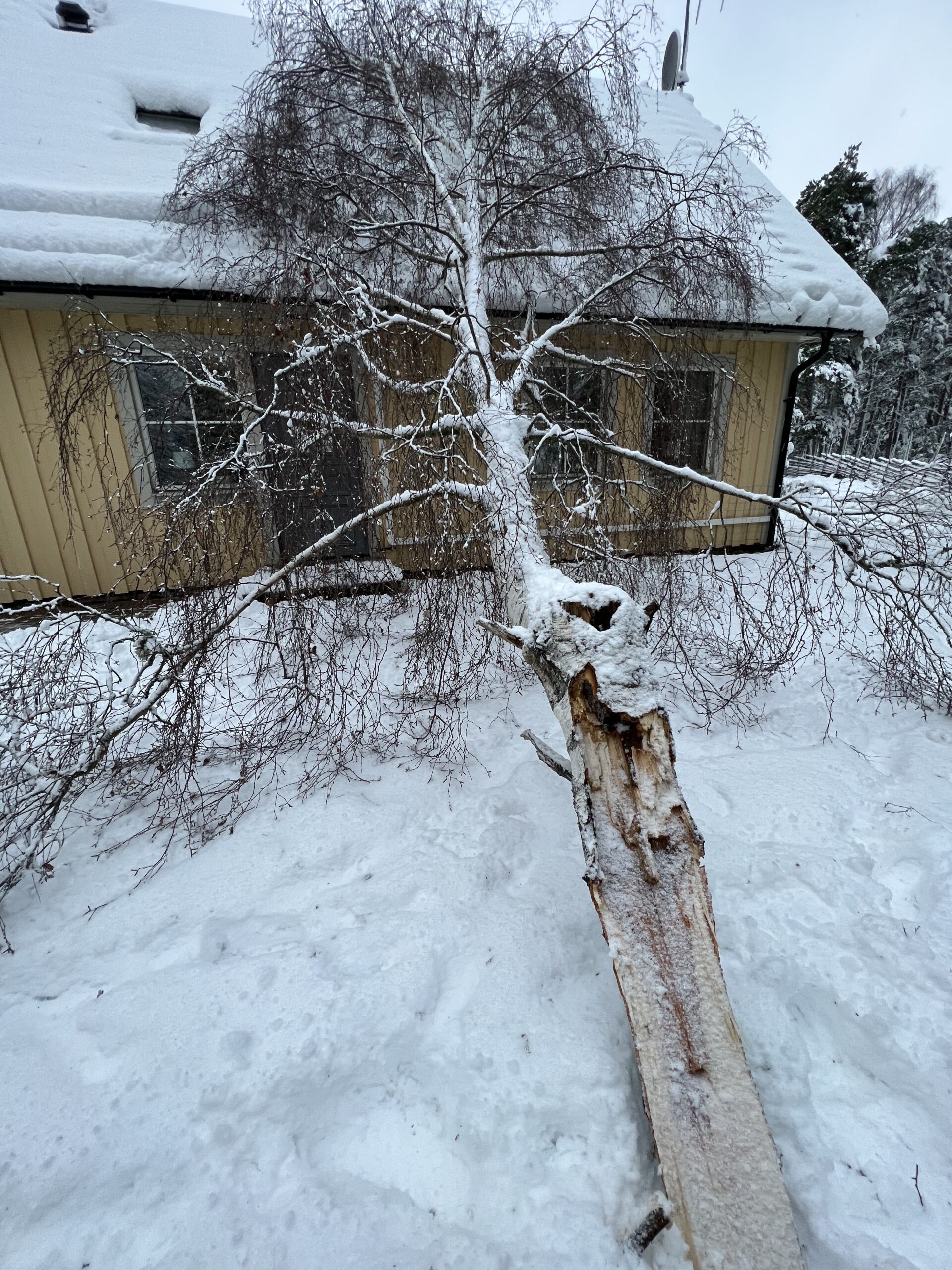 - Träd & Ved Entreprenörerna – trädjour, björk över hus i vinterstorm