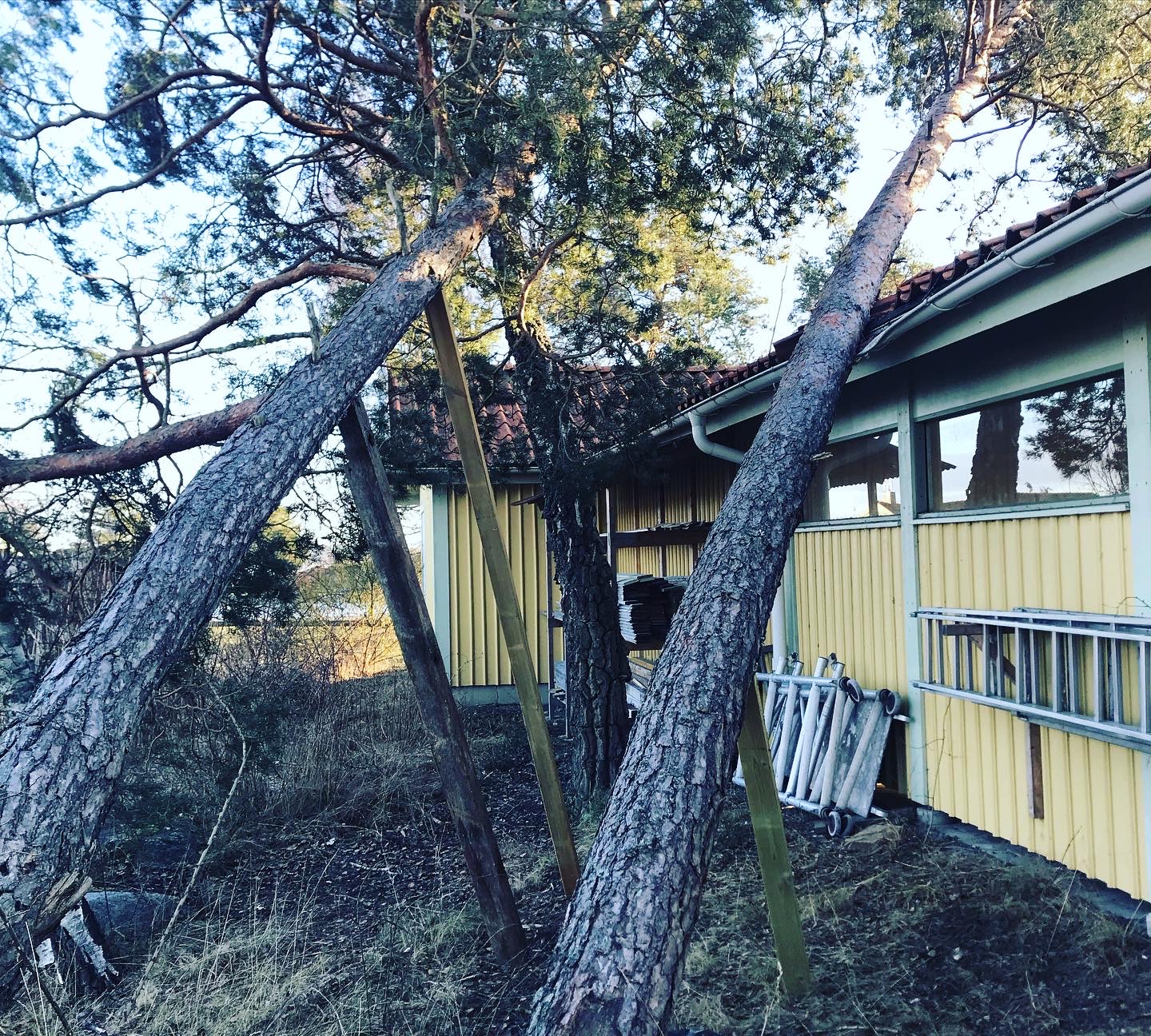 - Träd & Ved Entreprenörerna – trädjour, vindfällda tallar över garage. togs bort utan ytterligare skador.