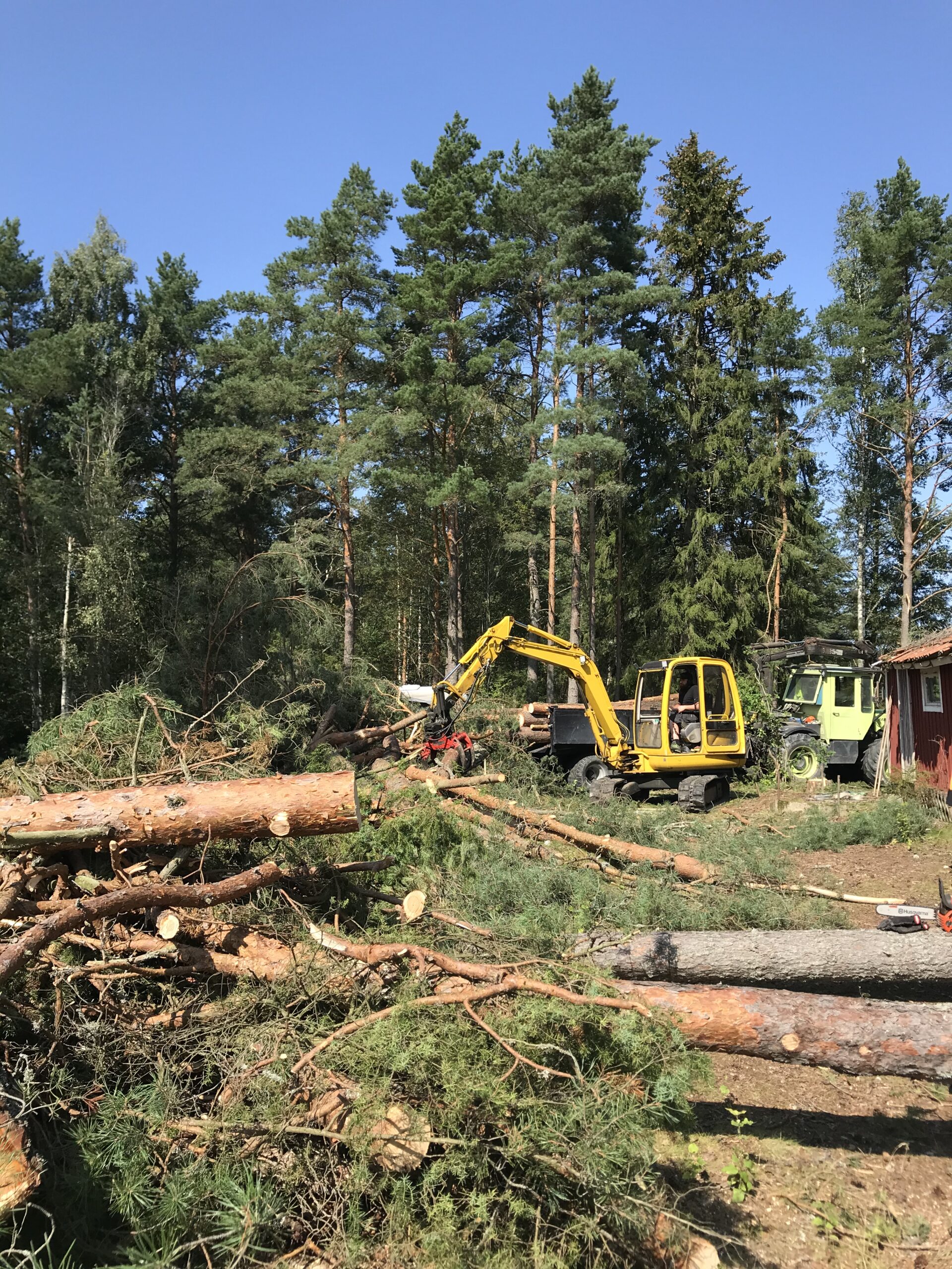 Efteråt tar kan vi hand om städning och bortforsling av allt material. Vi kan även göra ved av dina träd (<30 cm diam) på plats med vår mobila vedprocessor (kubba och klyva).