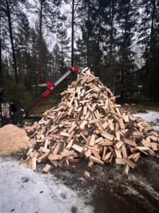 Våren 2021 började vi göra ved av kundernas träd i samband med trädfällning.